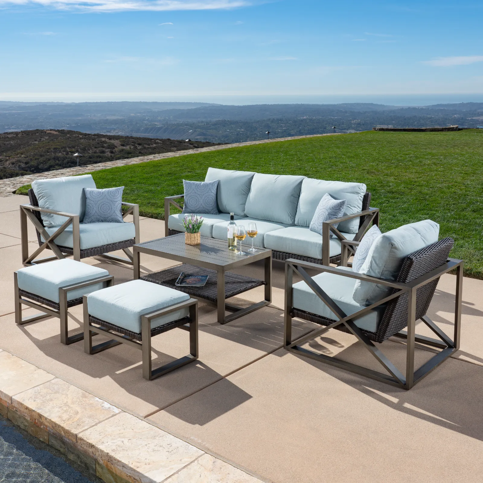 We build furniture that endures. Our collections feature premium, all-weather materials chosen for their longevity and performance, including hand-woven resin wicker, rust-resistant aluminum frames, and genuine Sunbrella® fabrics that resist stains, mildew, and fading. This commitment to quality materials ensures lasting value for the consumer and builds sustainable brand equity.